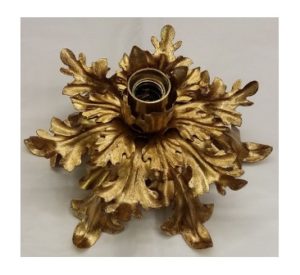Large ceiling light. It is in gilded iron with gold leaf and old patina. Lamp holder for screw bulbs. 220 volt system