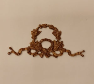 Decorazione corona d’alloro in ottone artigianale fuso in terra e patinato a mano.