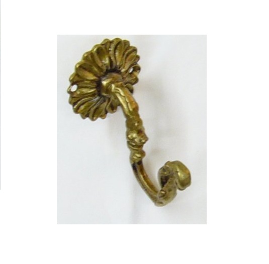 reggicordone da tenda cigno con base tonda a margherita – fissaggio con chiodi – finitura oro patinato mm. 45 x 65 – P135